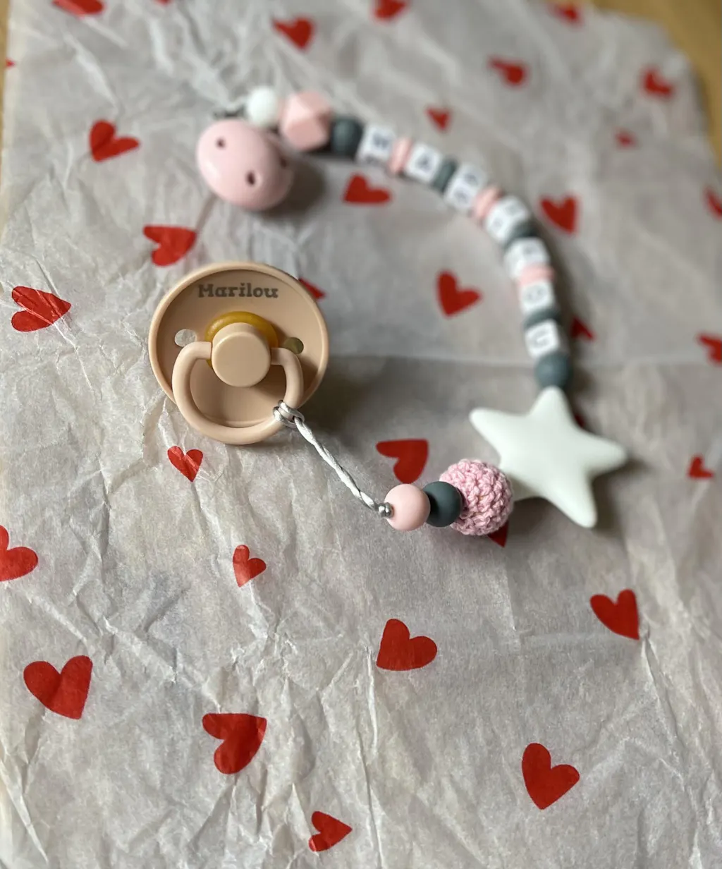 - Personalisatie: Maak de speen uniek met een gegraveerde naam naar keuze. Dit maakt het niet alleen een persoonlijk geschenk, maar helpt ook bij het vermijden van verwarring op de crèche of kinderopvang.